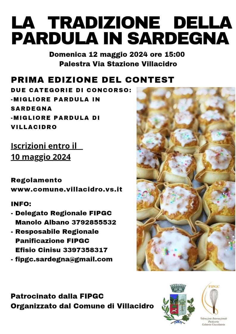 Gli Assessorati alle Attività Produttive ed alla Cultura del Comune di Villacidro, con il Patrocinio della FIPGC Federazione Internazionale Pasticceria Gelateria Cioccolateria, organizzano la Prima Edizione del Contest LA TRADIZIONE DELLA PARDULA IN SARDEGNA.